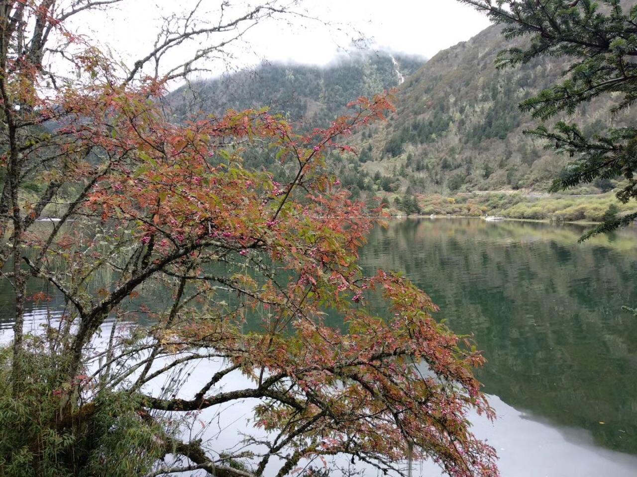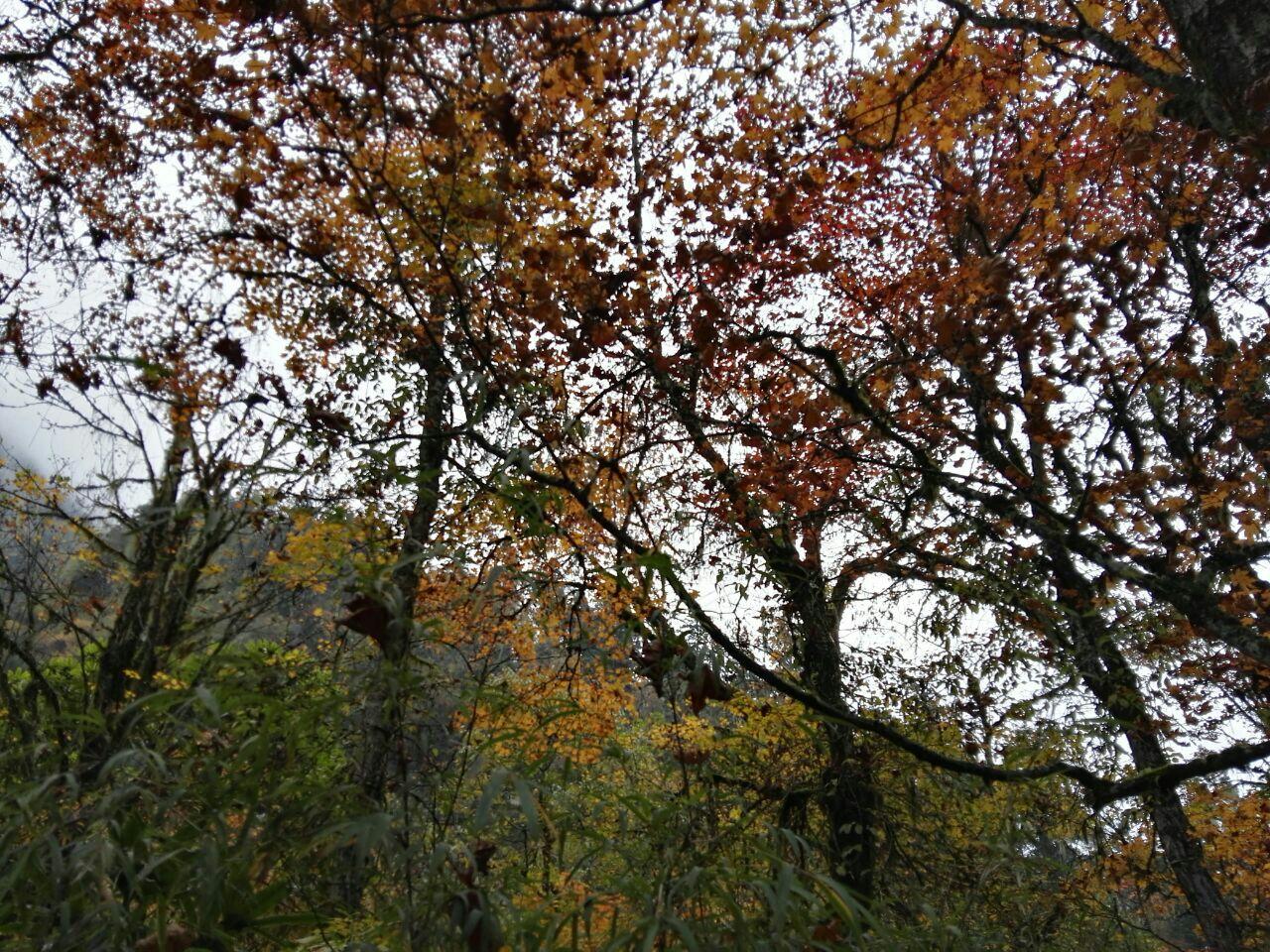 秋天的时候海螺沟原始森林挂满大片红叶,五彩缤纷。