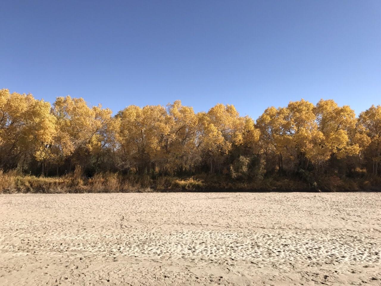 是青海唯一,也是世界上海拔最高的胡杨林。却不想,根本就没有人.在岸的这边还有几个大人带着孩子在河北玩耍,却因要趟过河才能够达到对岸,才能够进入沙漠看胡杨林,那些大人们因带着孩子停下了脚步。