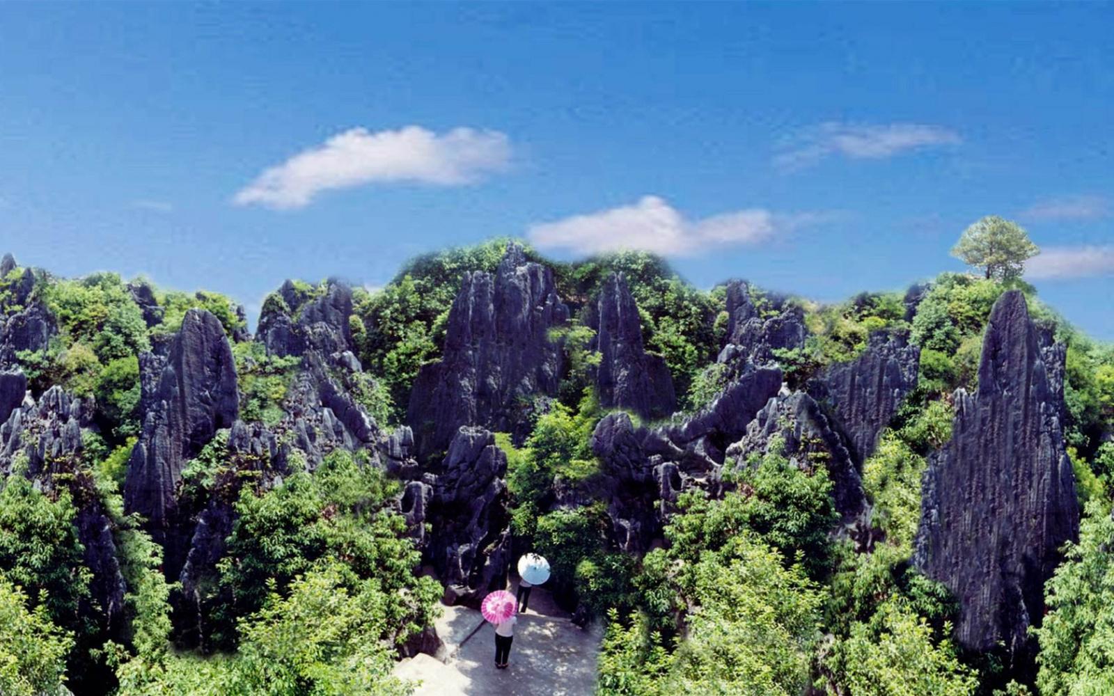 国家重点风景名胜区。因石芽表面呈鱼鳞片状,取典“天故隐其迹”句意,故名鳞隐。其由鳞隐、石洞寒泉、洪云山、寿春岩四处石林风景片组成。总面积一点二一平方公里。有鳞隐石林、洪云山石林、十八洞等景观。