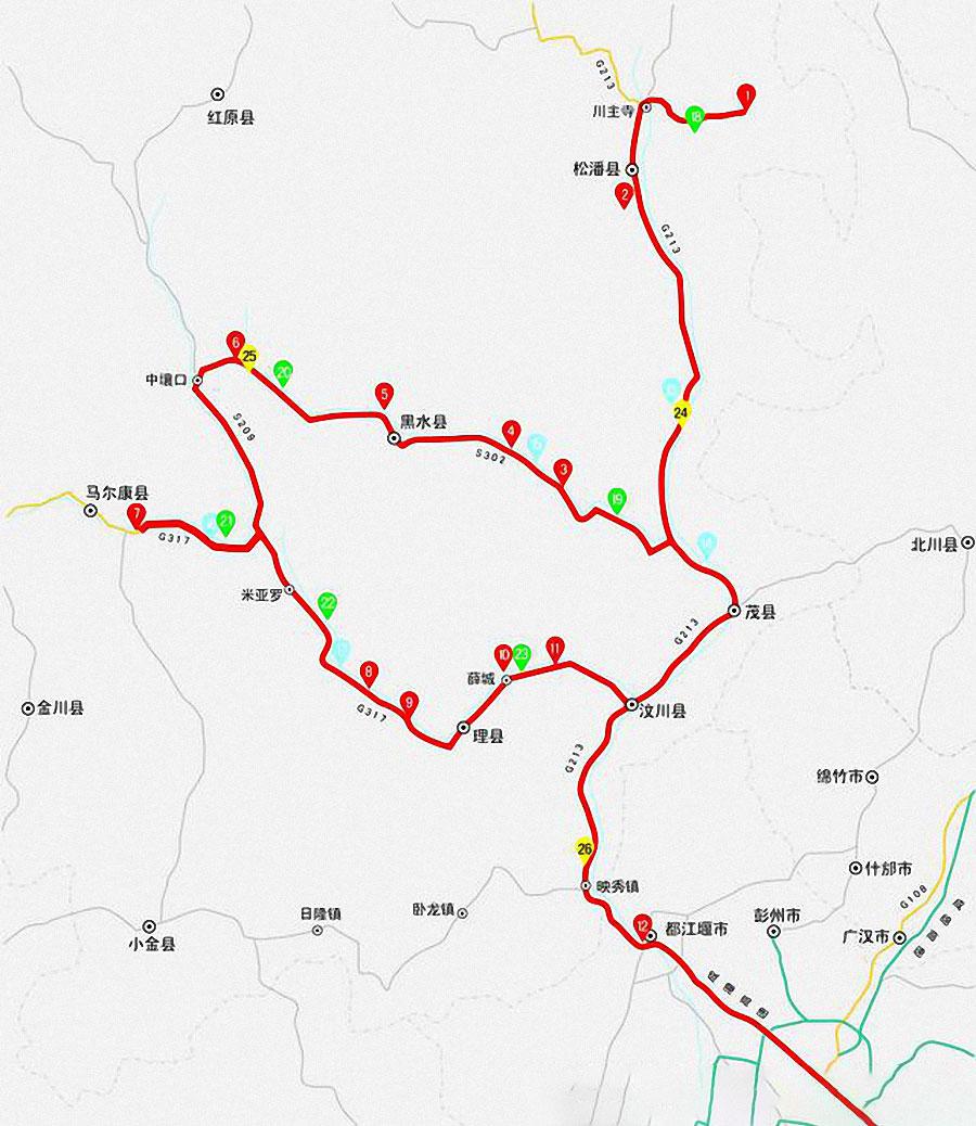 3.至黑水的302省道总体良好,黑水县附近东部一段由于修路,路况较差。黑水县至红原段的雅克夏垭口前后行车也需要特别注意。