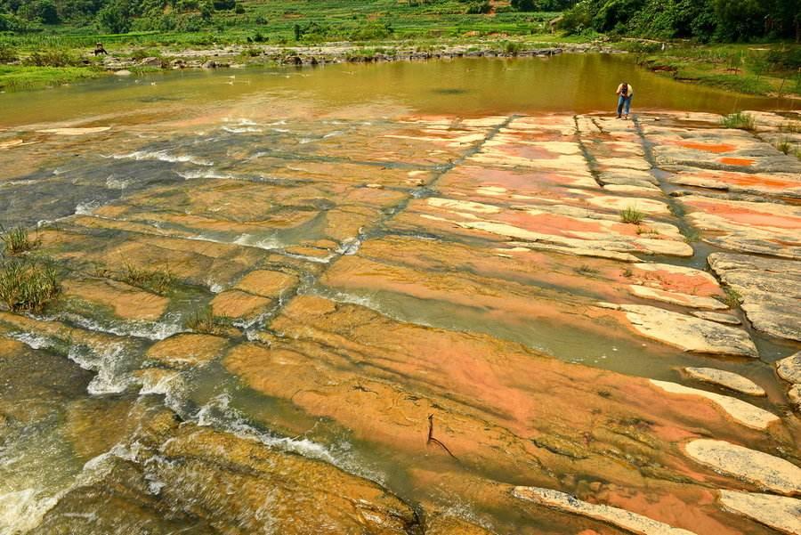 位于田东那拔镇福星村,棋盘滩石块大小均匀,整齐划一的排成横竖列,犹如一个巨大的棋盘,令人称绝。溪流汇聚在棋盘周围,石块宛如流动的棋子,趣味十足。