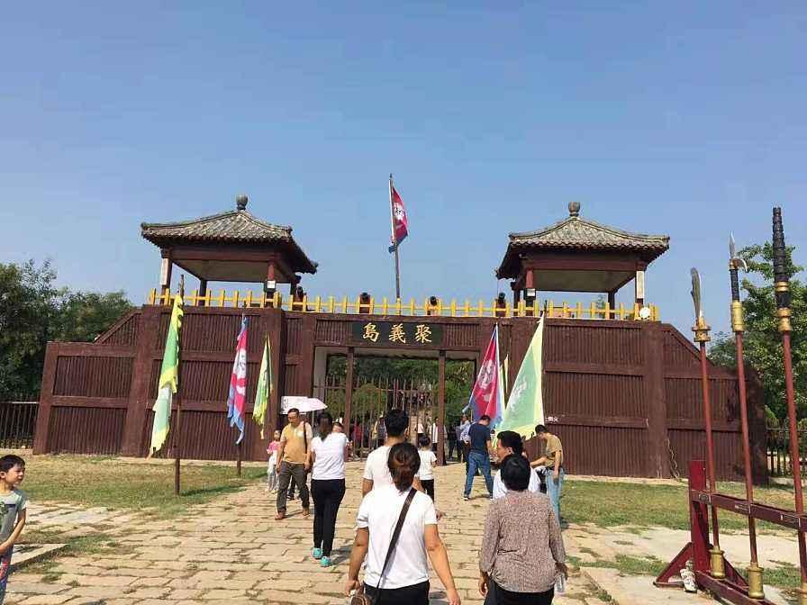 依东平湖而建。山寨设有三关。气势雄伟,蔚为壮观。是群雄议事、一百单八将排列座次的场所,水寨周围有万亩天然湿地,芦苇丛生,是游客体验水浒文化、休闲度假的理想胜地。