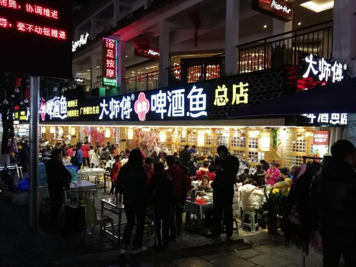 二月底去的阳朔西街,应该是淡季,游客不多,去的几家饭店,态度都很好。阳朔西街上青石板路,双月桥,徐悲鸿故居无不诉说着这条街的老旧历史。如今这里是人头攒动,街两边小吃,酒吧,啤酒鱼琳琅满目,一片繁华,总的来说还是值得一去的。