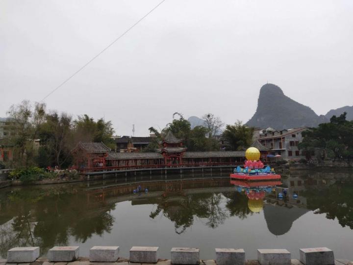 黄姚古镇内有古戏台、宝珠观、龙爪