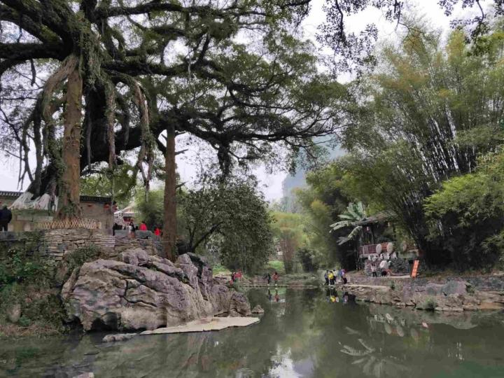 黄姚古镇内有古戏台、宝珠观、龙爪榕、带龙桥、农趣园、吴氏宗祠等景点。古戏台位于村口,整座建筑雕梁画栋,刻有各种飞檐走兽的形象,是旧时搭建的戏台,上面还有清代举人题字的“可以兴”横匾,非常值得一游。