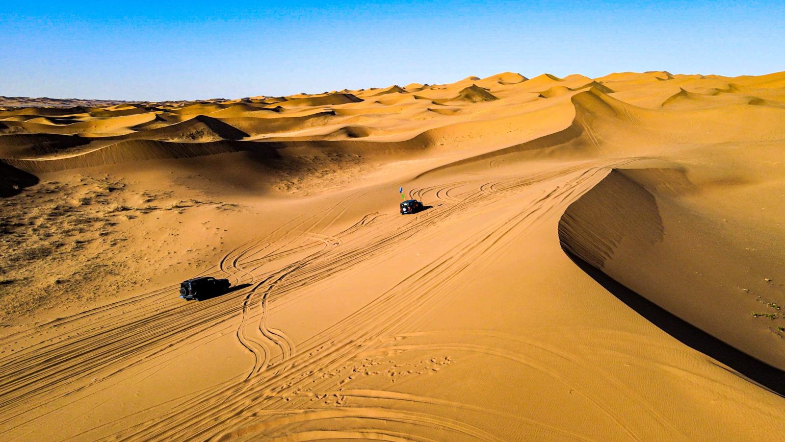 2.阿拉善沙漠胡杨林自驾游路线:乌海-定远营-贺兰山-南寺-腾格里沙漠-月亮湖-腾格里沙漠-天鹅湖-额济纳胡杨林-居延海-阿拉善大峡谷,全程约1600公里,自驾游玩3-4天