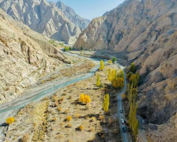 车轮碾过昆仑山的褶皱,塔莎古道在秋色中苏醒,300公里的险峻与绚烂,是帕米尔高原赠予勇者的史诗