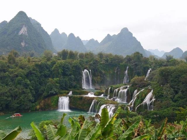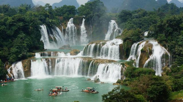 德天瀑布景色秀丽,瀑布很壮观,就是只能开车到集散中心停车场