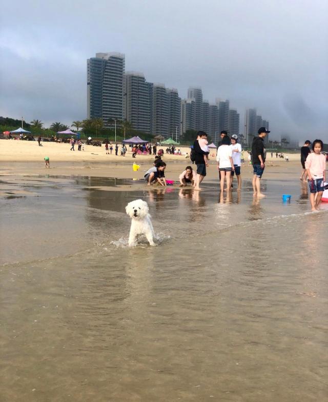 大角湾没有沙扒湾那么大浪,带小孩