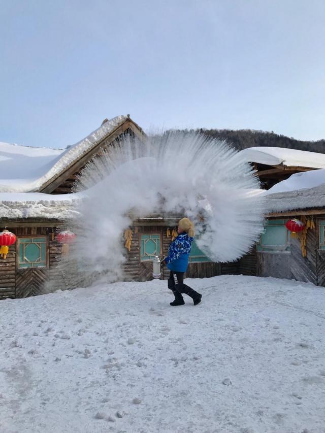 刚进雪乡大雪谷,寒日里看雪飘过,