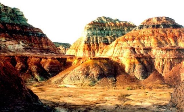 五彩湾在戈壁荒漠中呈现了一个五彩