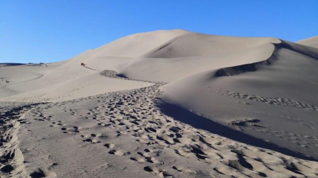 敦煌鸣沙山在沙漠或者沙丘中,由于