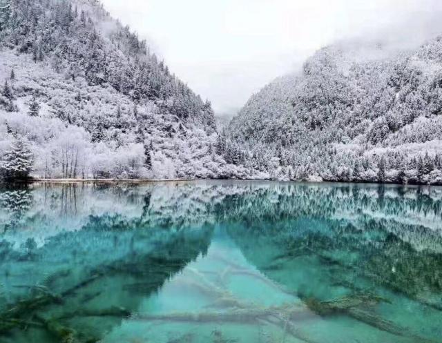 冬天的九寨沟银装素裹,大地都披上