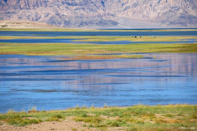 班公措湖湖水十分清澈,湖水由于光