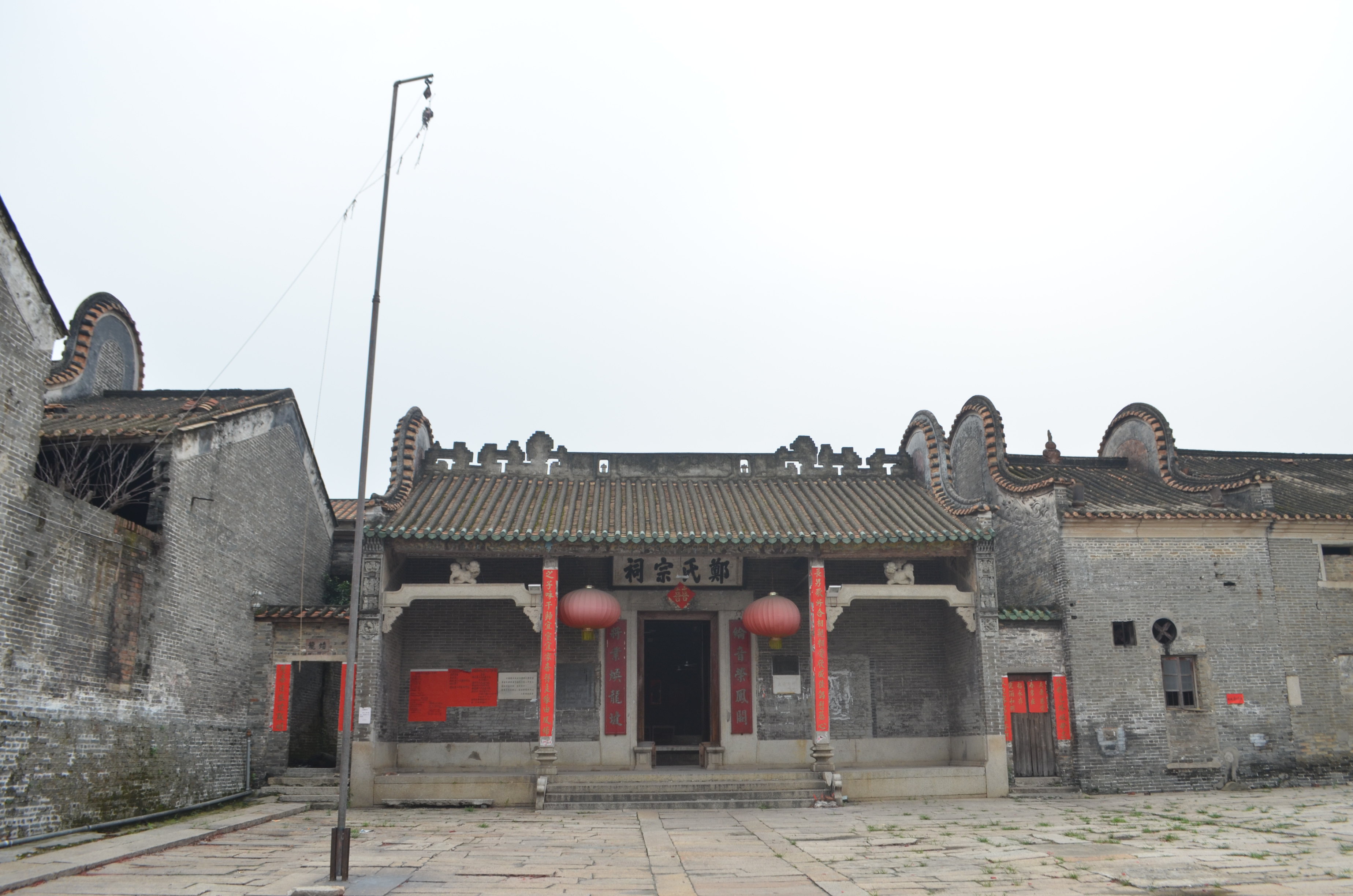 大旗头村古建筑群,是清代广东水师提督郑绍忠所建。它建于清代光绪年间,是粤中地区较有代表性的清代村落。该村民居、祠堂、家庙、第府、文塔、晒坪、广场、池塘兼备,聚族而居,布局协调,风格统一。