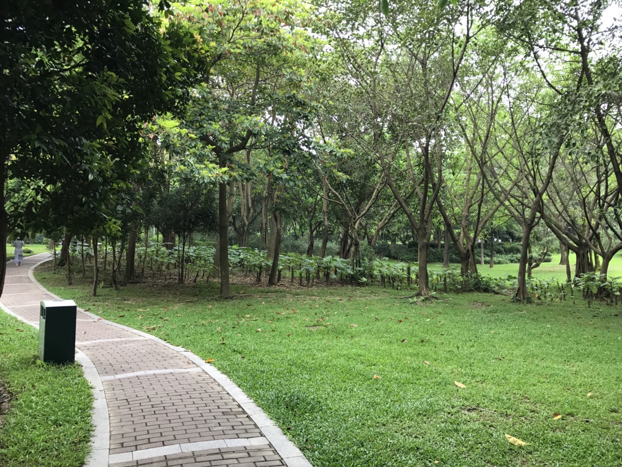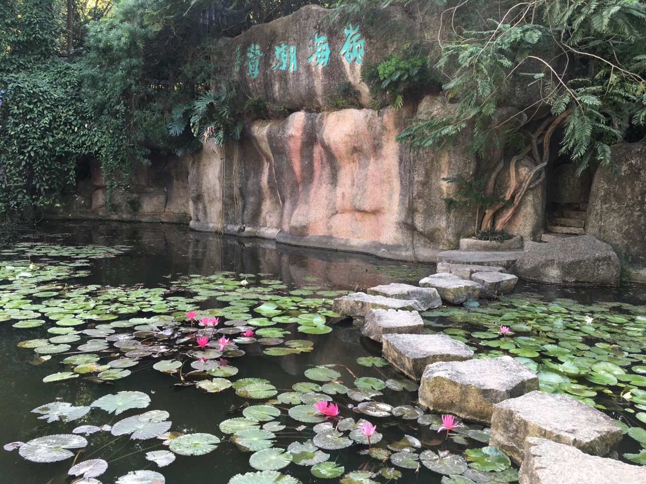 公园南区建有以棕榈科植为主的、具有热带、亚热带风光的8万平方米的椰风林大草地,为游人提供了环境优美的活动空间可3万平方米的人工湖水质清澈 、环境优美,给公园增添了灵气,使游人享受划船和垂钓的乐趣。