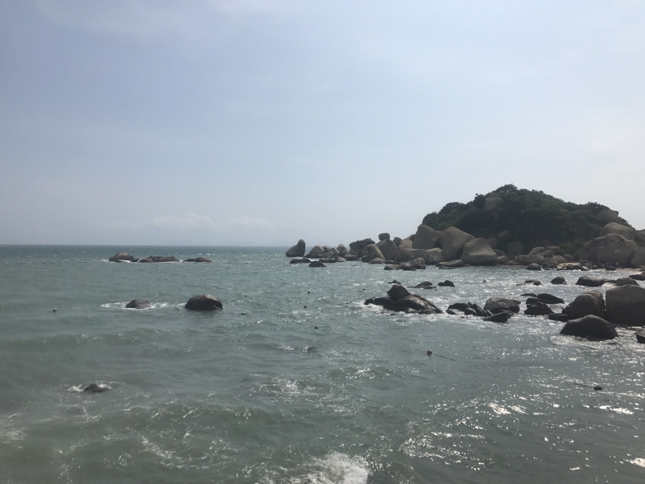 直到所有人都晒到头发晕,才依依不舍离开沙滩。此时已是下午3点,阳光越来越猛烈了,奇怪的是来游泳的人竟然比我们来时更多。洗刷完毕我们离开了月亮湾,踏上归程。