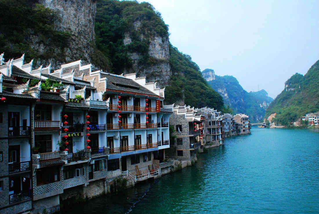 地贴崖建筑文化博物馆。城内古街古巷曲径通幽,石桥城垣错落有致,碧水晨雾姿态万千,春江渔火诗意盎然,有雄伟奇特、蜚声中外的国家级重点文物保护单位青龙洞古建筑群和明清古民居、古巷道、古码头、古城垣等160余处,观赏价值与科考价值俱高。其建筑风格为青砖黛瓦、高封火墙、飞檐翘角、雕梁画栋,每一块青石板、每一块青砖都记载历史遗迹,泣诉着千年古镇的沧桑。