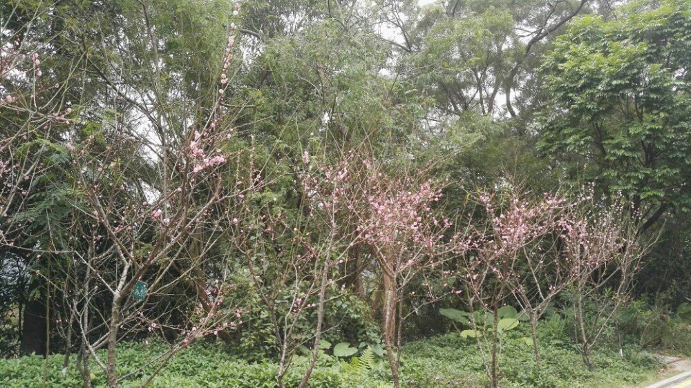 桃花花期:2月底-3月上旬。桃花花语:爱情的俘虏,“雨中草色绿堪染,水上桃花红欲然”,在深圳莲花山北侧有一片桃花林,现已达到10亩左右,桃花林已有桃树近千株。现时花开时节,放眼望去,一片红云被镶嵌在翠绿的草坪上,分外妖娆。