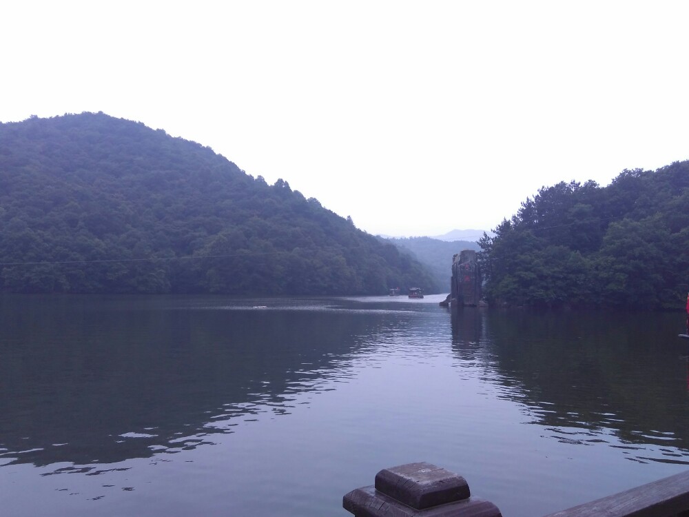 木兰天池,国家 AAAA 级景区,位于黄陂区北部石门山,距武汉市中心 55 公里,堪称武汉的 " 后花园 "。景区沟壑纵横,林木茂盛,一年四季流水不断,呈现的是一种山水交融的湿地生态。景区内以观赏飞瀑、溪潭、怪石等景观为主,可谓十步一景、百步一绝。高山环抱的天池水如明镜,清澈见底,游船踏浪,驶过青山白云倒映的池水。