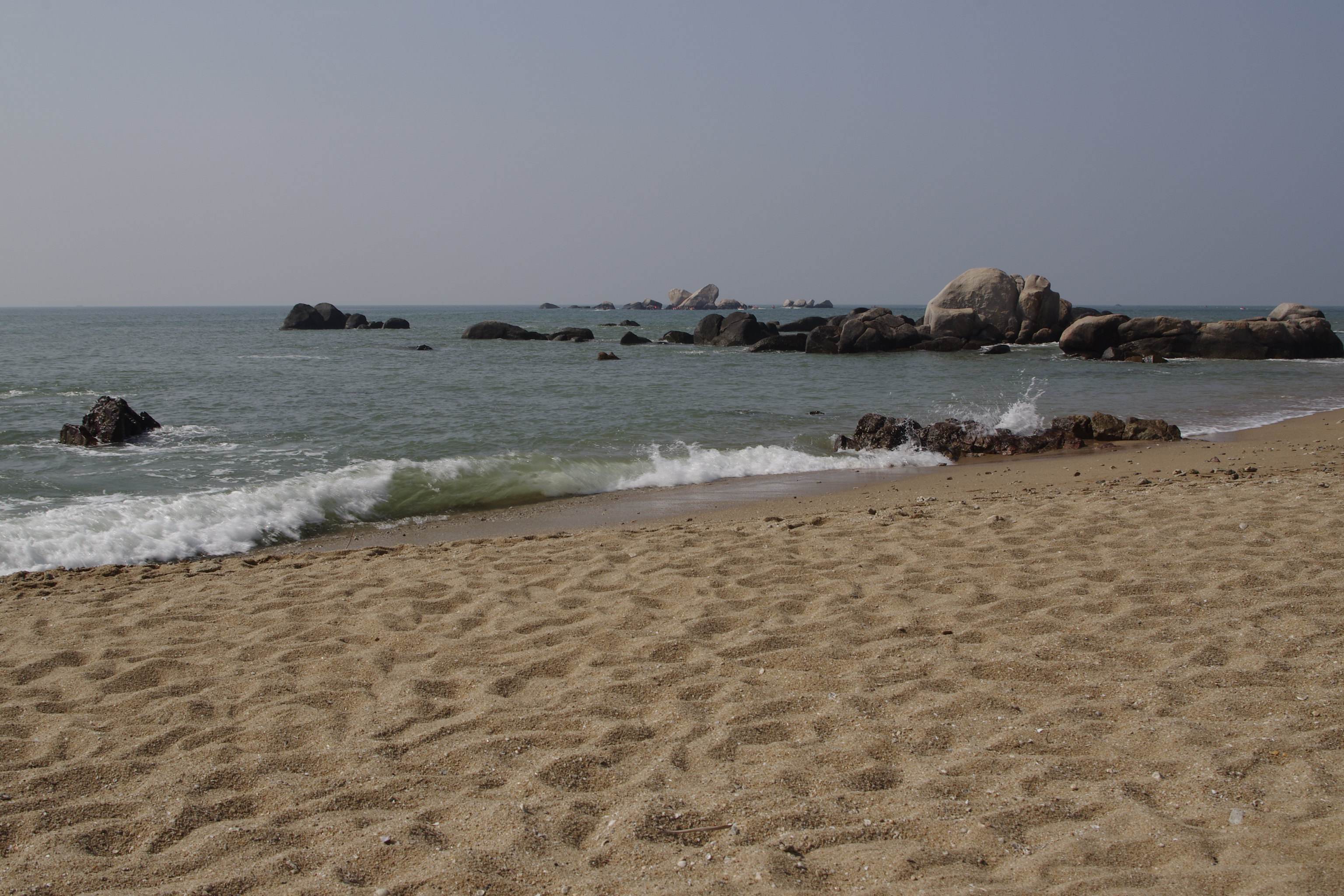 人工铺设的金色细沙与清澈的海水相映成趣。滨海景观长廊的上面是白色波浪形状的顶棚,当夜晚两侧的灯全亮起来的时候,煞是好看。在这里还举办了系列盛事,如“世界沙滩排球赛”、“风•夏音乐季”等,已成为金山海岸线响亮的名片。
