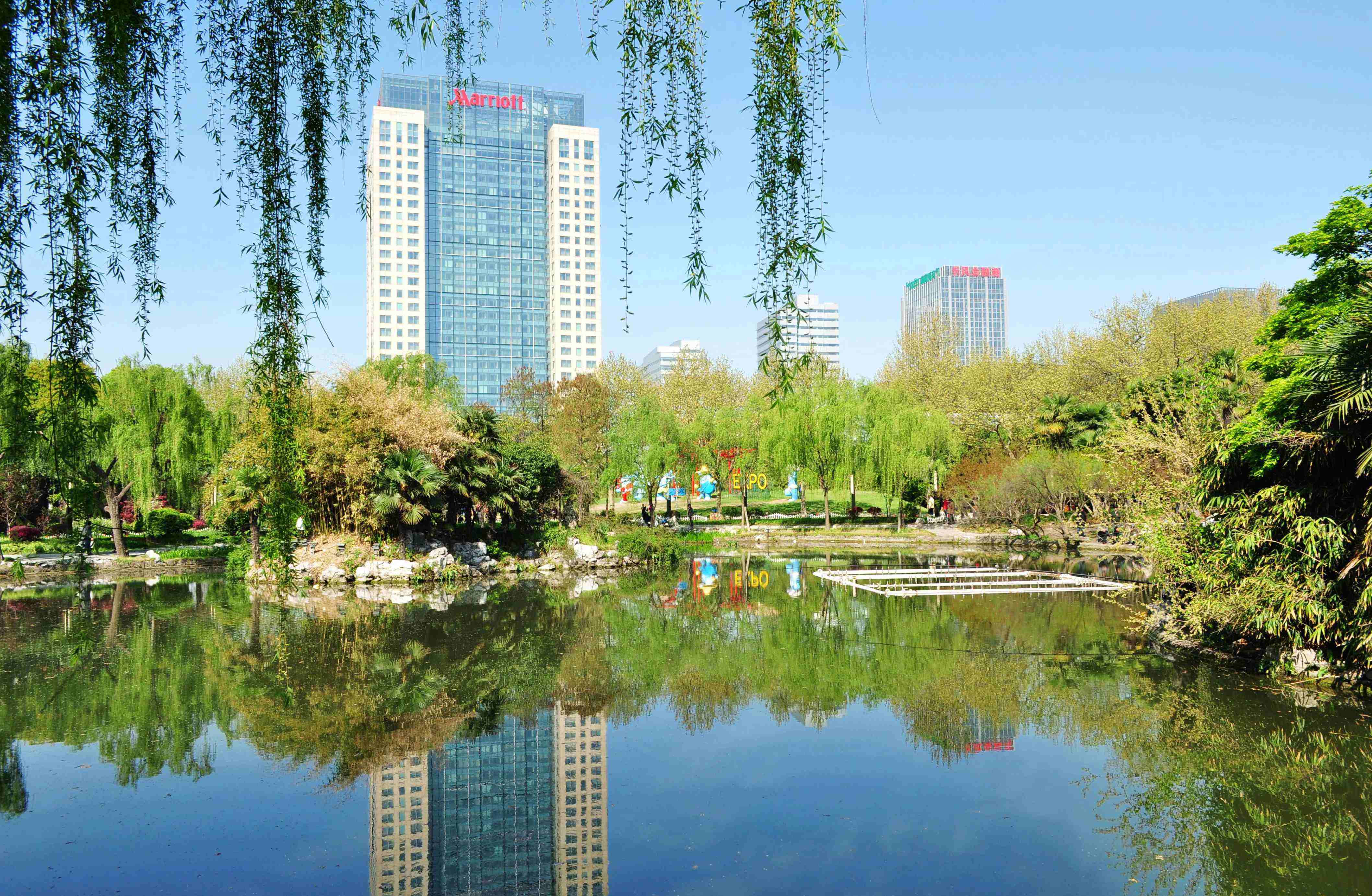 园中的青枫绿洲、夕阳晚照、岁寒三友、迎春池、睡莲池等20余处园林景点姿态万千。