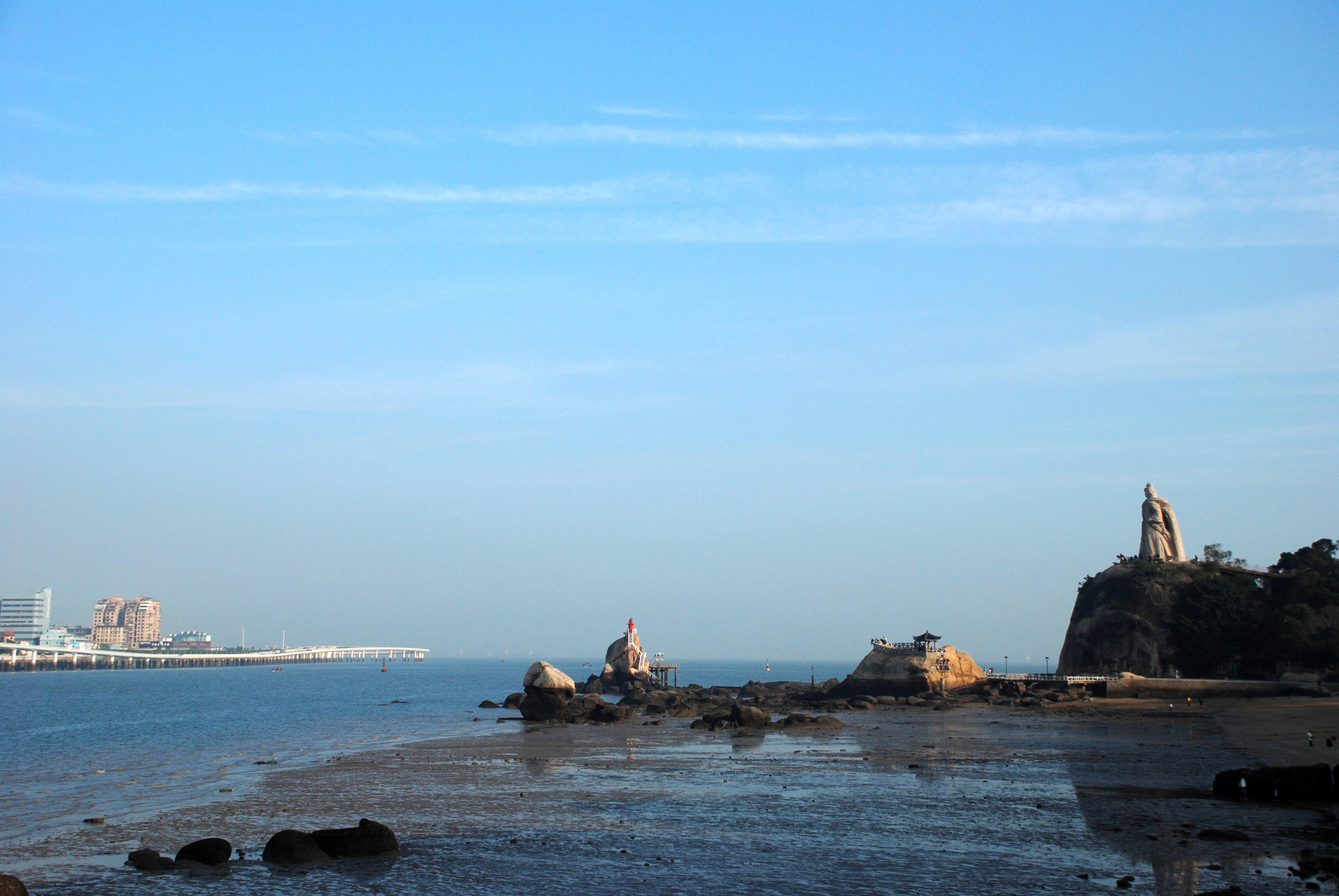 湄洲岛全岛南北纵向狭长,形如娥眉而得名,被誉为“南国蓬莱”,是妈祖文化的发祥地。岛上有悦耳动听的湄屿潮音、憧憬希望的观涌日出、随天而变的妈祖照镜、栩栩如生的虎狮守印、流连忘返的日纹观涛等著名景点。