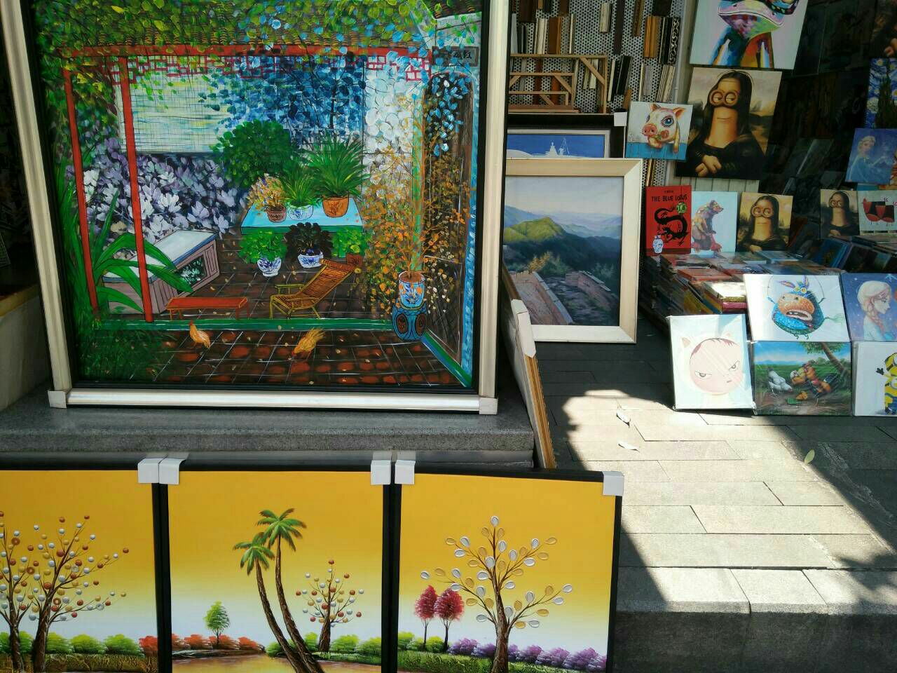 大芬油画村到处都是油画,闻到得都是墨香,在深圳来说,是一个非常有特色的地方。如果有喜欢画画的,周末的时候可以去那逛逛,不仅是一些成品画的店铺好多,而且不止是油画,还有很多各种类型的,也有卖一些画画用的用具,也有诗词的,帮忙裱画、裱诗词的,还有专门教别人作画的,各种跟画有关的店铺,非常多。
