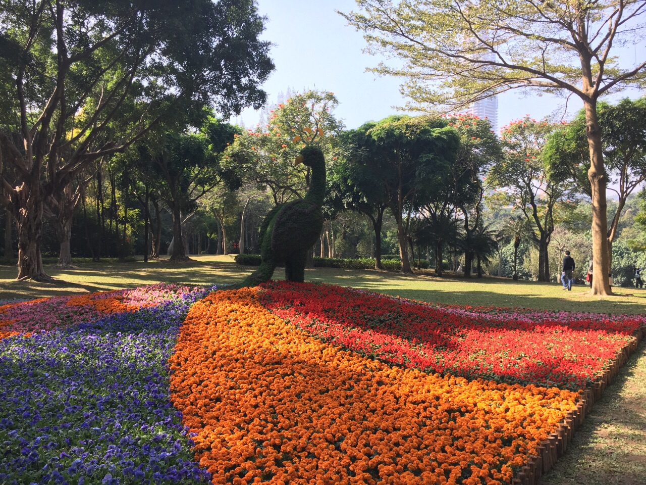 公园南区建有以棕榈科植为主的、具有热带、亚热带风光的8万平方米的椰风林大草地,为游人提供了环境优美的活动空间可3万平方米的人工湖水质清澈 、环境优美,给公园增添了灵气,使游人享受划船和垂钓的乐趣。
