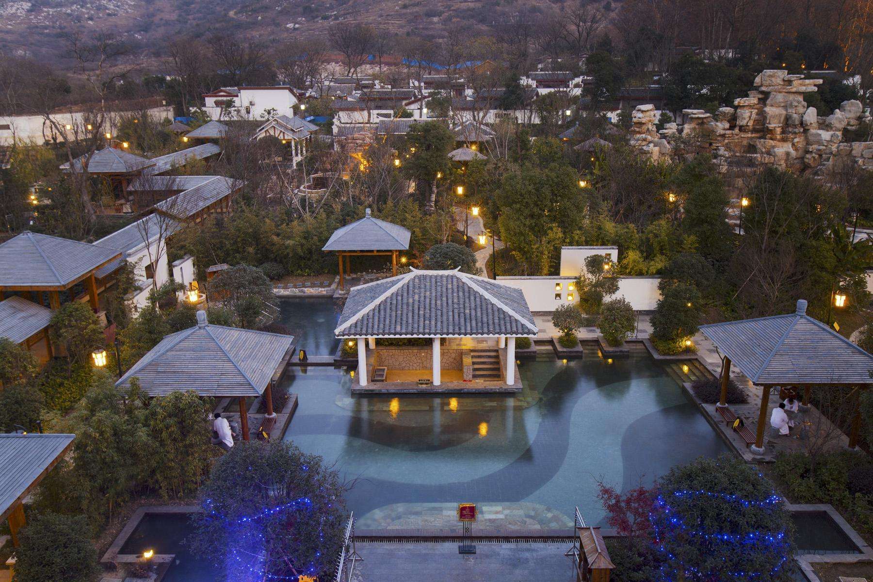 建筑面积占地面积114亩,以徽式建筑风格为主题,分室内外温泉区,布局合理,设计独特,拥有“瀑、泉、池、药香园”系列,组成了大小不同,形态各异的园林式露天温泉 区,其中温泉养生泡浴区作为 目前主导产品,内设有强身健体中药浴、温泉SPA、温泉石板浴和景观池等30多个特色项目,配套以半汤特产经营店、综合休息大厅 、健身房、棋牌室 、保健理疗区等。