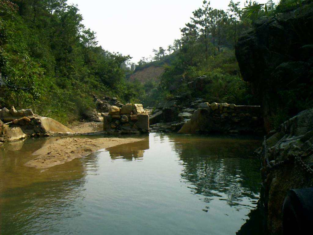 这儿,有着名的大东山温泉,有至清至纯的泉水。林深木茂之中,清澈的山溪从林中穿过,一条古老的铁索桥横跨奔流溪涧,与涧边的溪石、两岸的绿树,构成一幅山溪小桥图景。夏季雨水旺盛,可以顺着水流漂流。