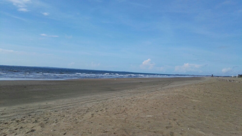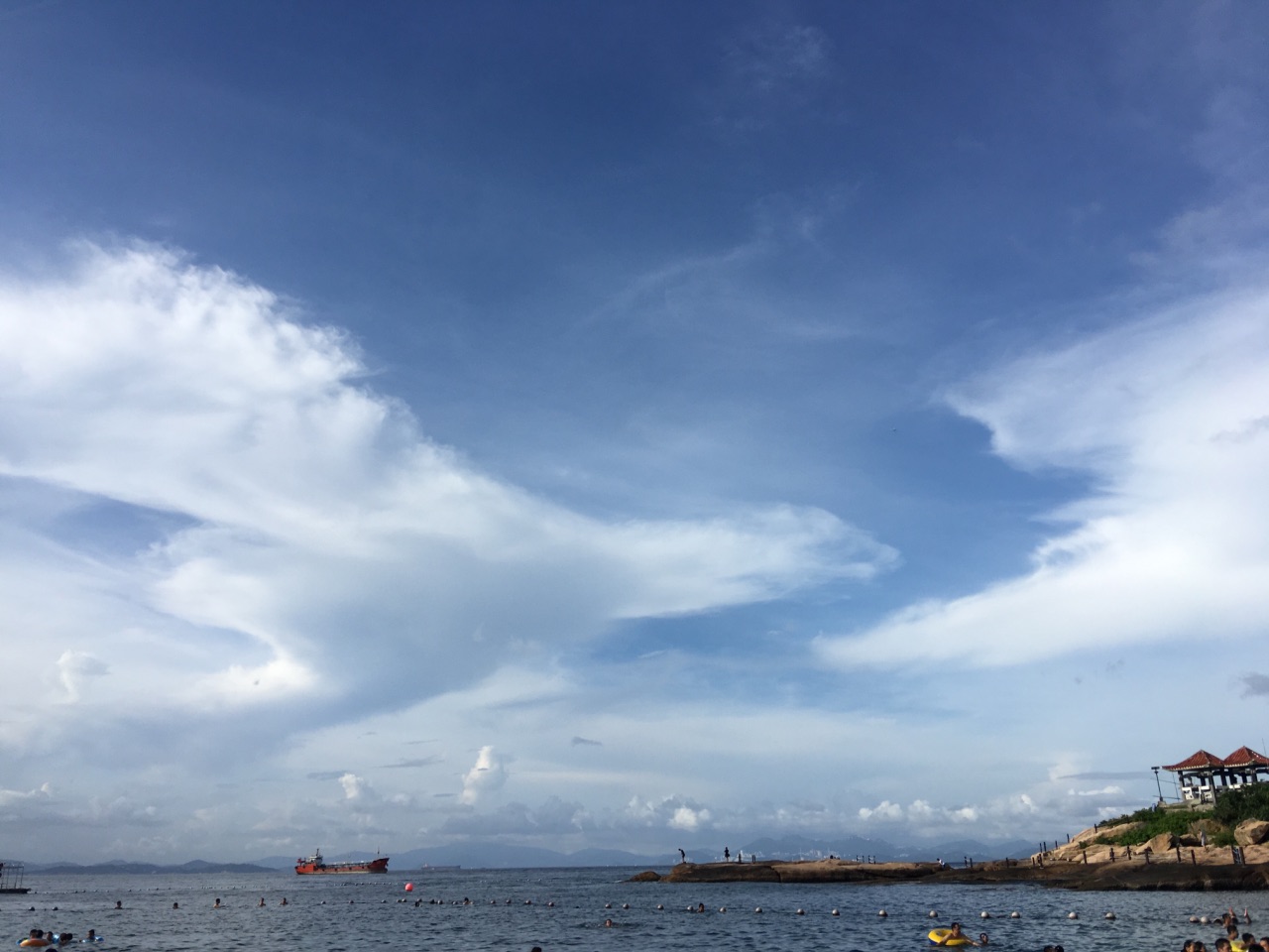 湛江东海岛上的沙滩、蓝天、白云,与其他海岛无异,但沙滩上的日升日落十分壮美。或许是因为长滩所提供的背景视野宽阔的缘故,东海岛适合静看日之轮回。