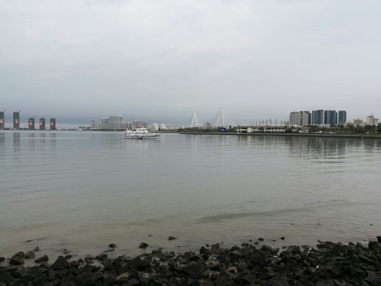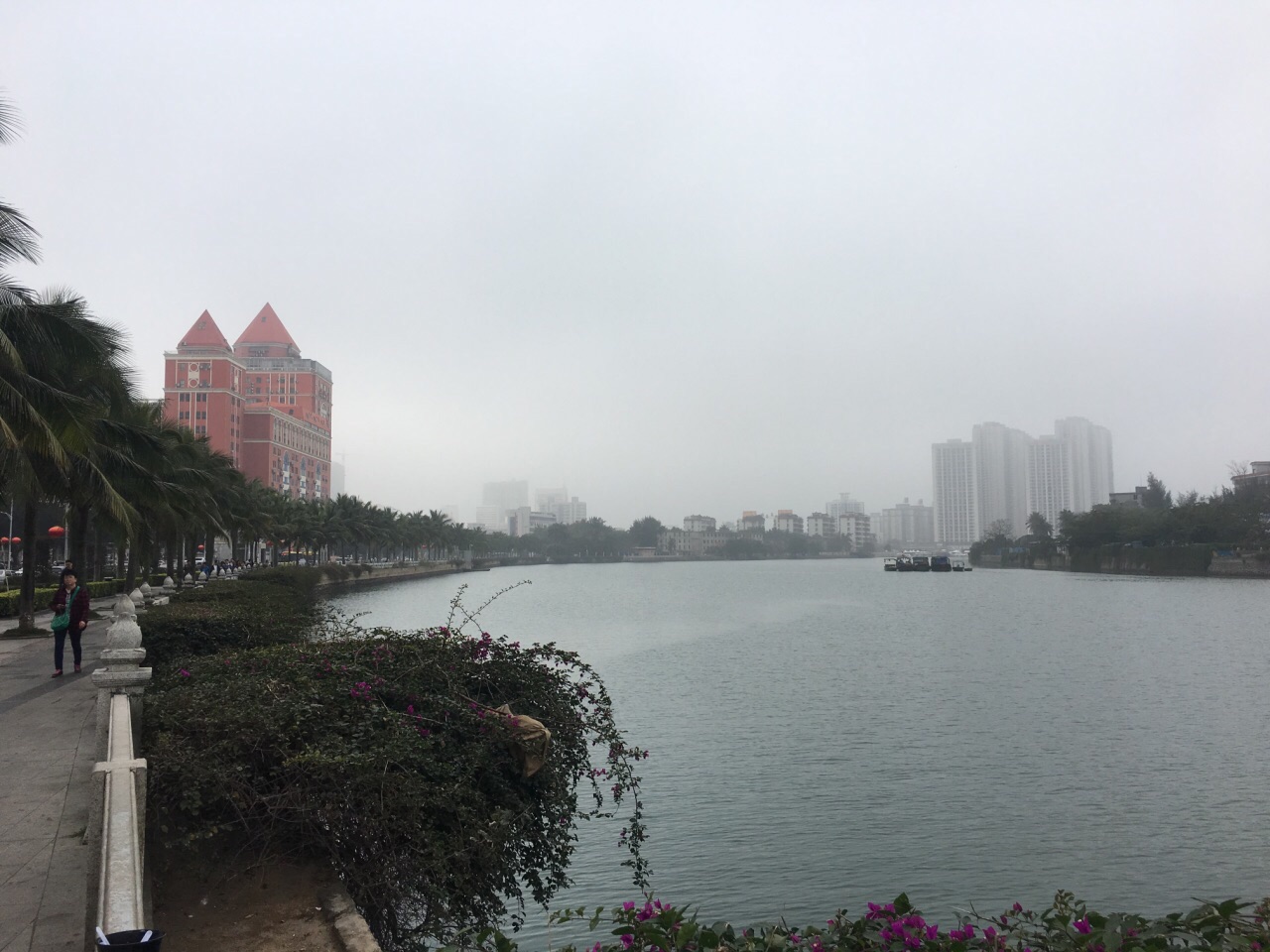 海口钟楼位于长堤路,面向入海口,南面中山横街与中山路相对,北临海甸溪,依街傍水,景致十分幽雅,被列为海口八景之一。傍晚来往的船、客轮宿靠堤边,夕阳残照,波光粼粼,更添几分姿色。