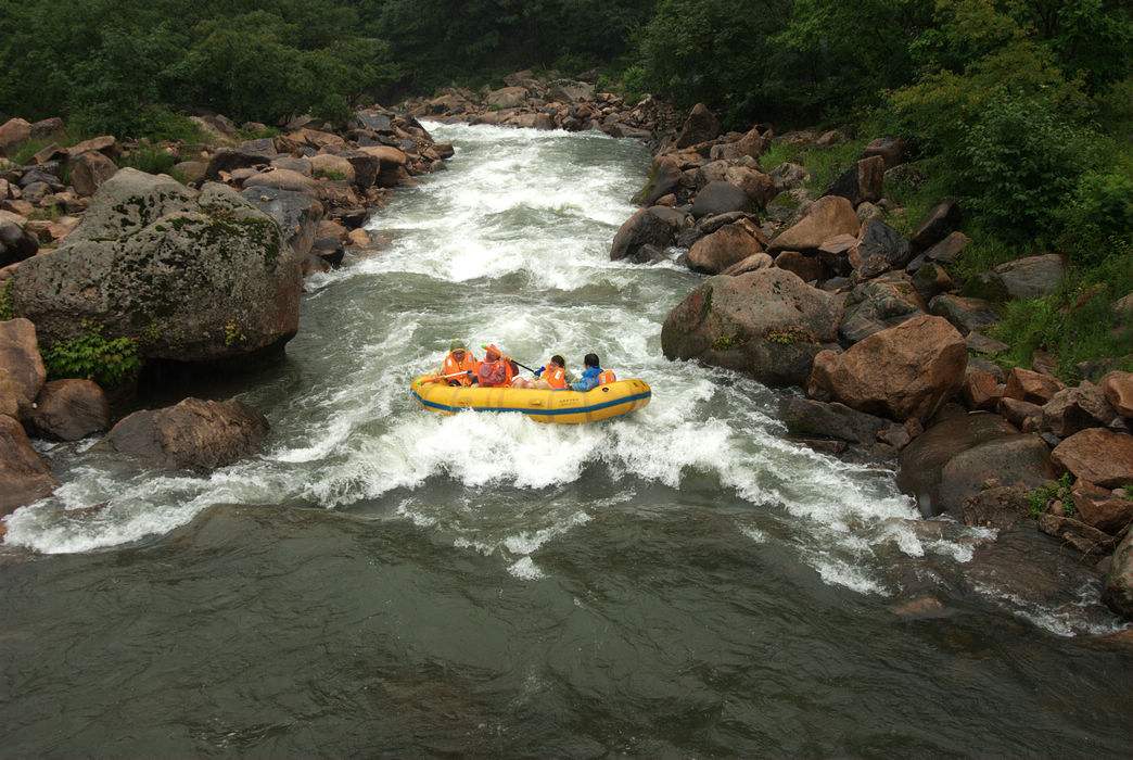 漂流河道途经20多个自然景观。流水时而奔腾直下、激流澎湃,时而回旋幽谷、心旷神怡。周边群峦叠翠、彩蝶翻飞,景色秀美迷人。远山近水构成一幅幅多层次美丽画卷。全程长约4.5公里,漂流时间约2小时。