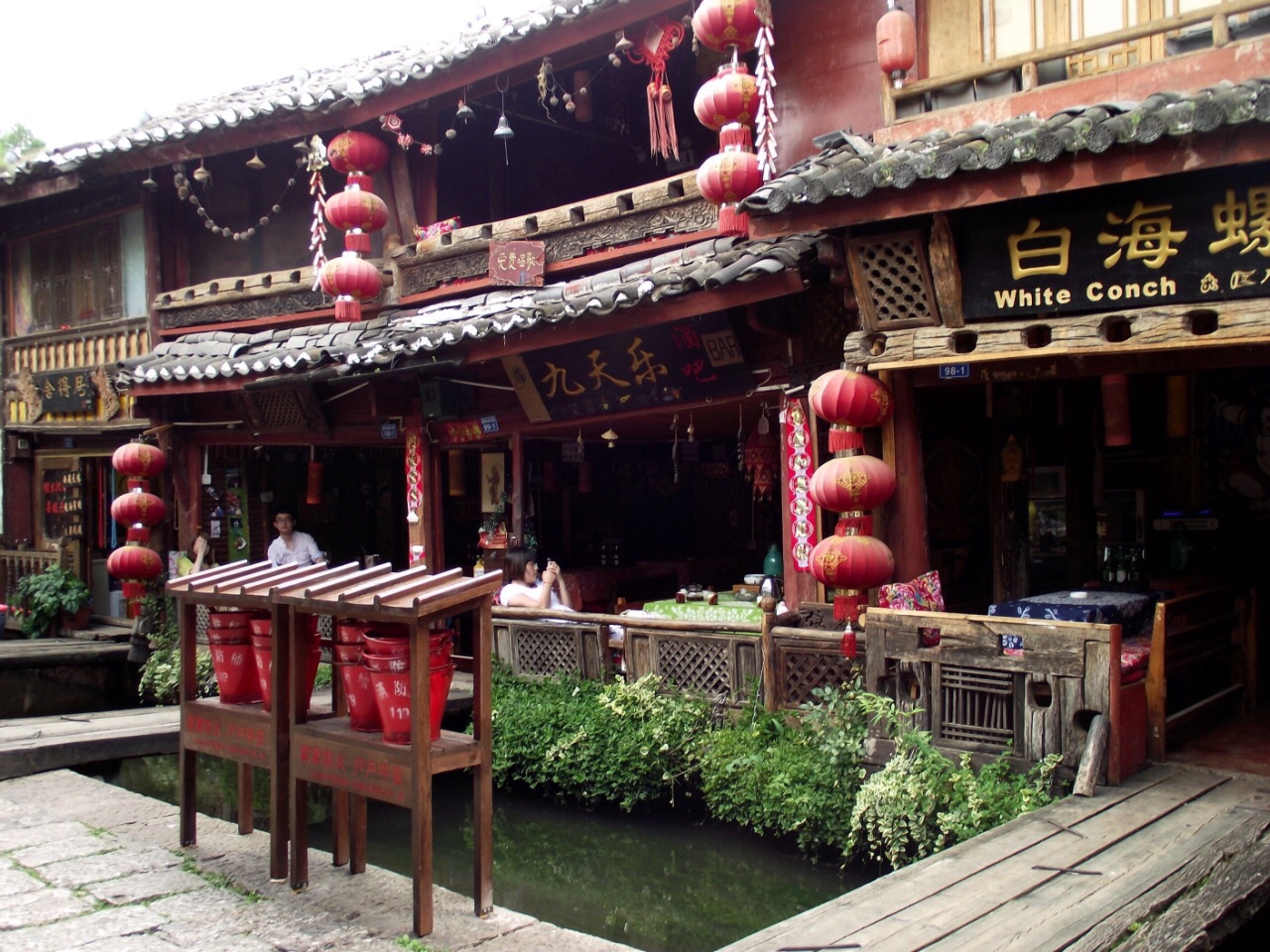 束河古镇位于丽江古城西北部,是当年茶马古道上的重要驿站。古镇依山傍水,构造布局与大研古城相仿,屋舍错落有致,巷道间流水潺潺,环境优美。难得的是,由于旅游开发较晚,束河古镇比大研古镇要幽静古朴得多。