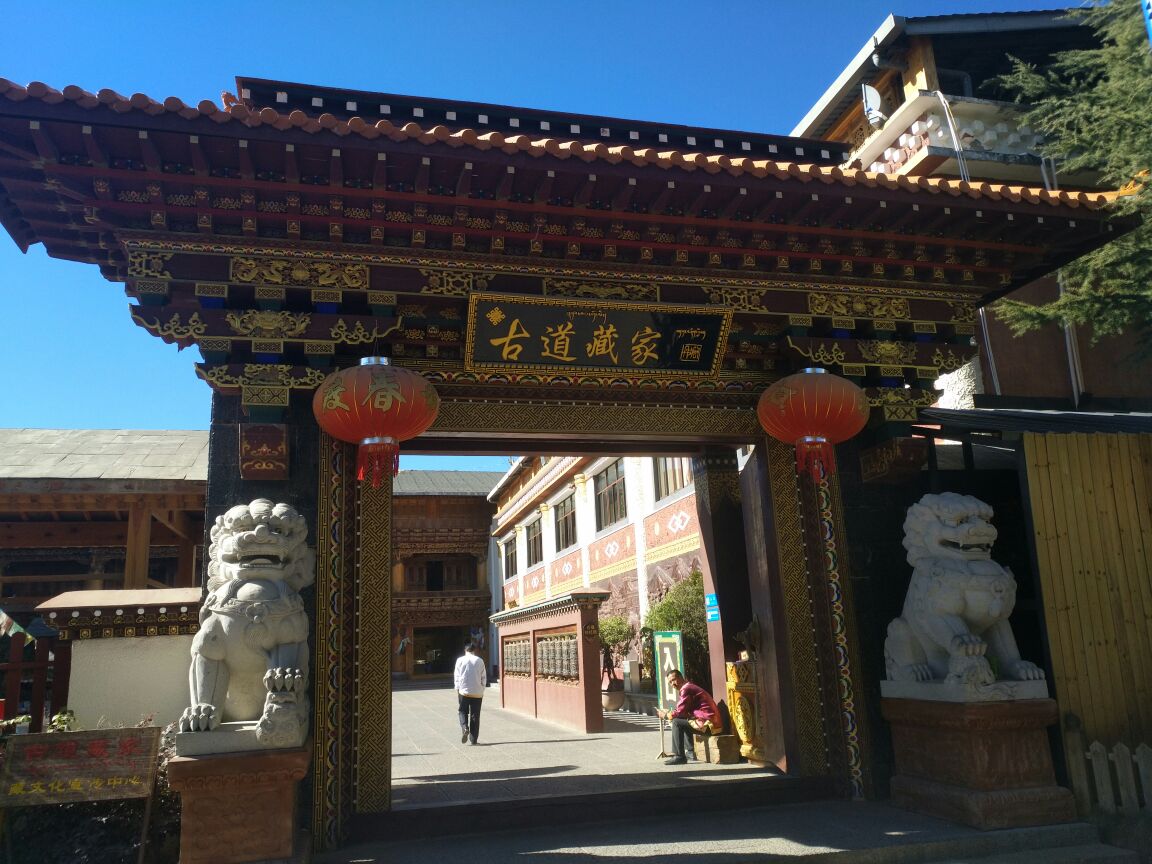 从雕梁画栋的挂着“束河古镇”四个字的大牌坊走进去,沿着两边都是店铺的石板路面可以一直走到古镇中心,像大研古镇一样,这里也叫四方街。当年的四方街,是马帮交易皮毛皮货的场所,现在的四方街,四面都是各种商铺,依稀可以感觉得到当年的繁华。