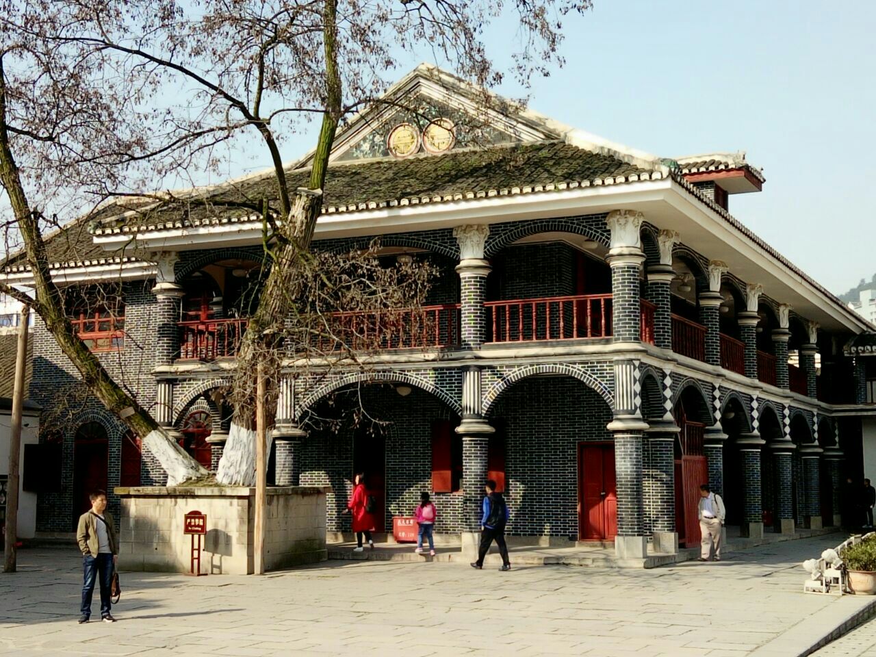 遵义会议会址原为黔军25军第二师师长柏辉章的私人官邸,整个建筑分主楼、跨院两个部分。主楼的走廊是一个观景、拍照的好地方,这里可以看到周围苍翠挺拔的群山指点昔日红军二占遵义时与敌军鏖战地红花岗、插旗山、玉屏山、凤凰山诸峰。
