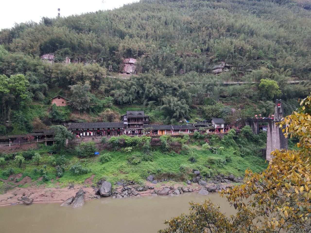 丙安古镇三面濒临赤水河,你可以看到河边建有许多由数百根圆木支撑在岩石上的吊脚楼,非常壮观,在这拍摄一些照片很不错。
