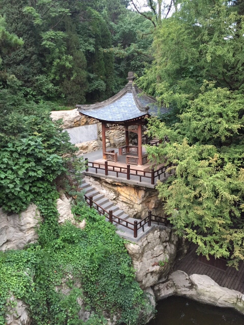 樱桃沟是两山所夹的溪涧,山涧两旁遍植樱桃树,如今樱桃树已不复当年盛况,但地名流传了下来。除了樱桃之外,还有迎春、海棠、杏桃、牡丹、芍药等花卉,依时节次第开放,宛若世外桃源。樱桃沟泉水清澈甘甜,还有被誉为“活化石”的水杉也在这里蔚然成林,更有青檀、红松、玉铃花等珍稀濒危植物。