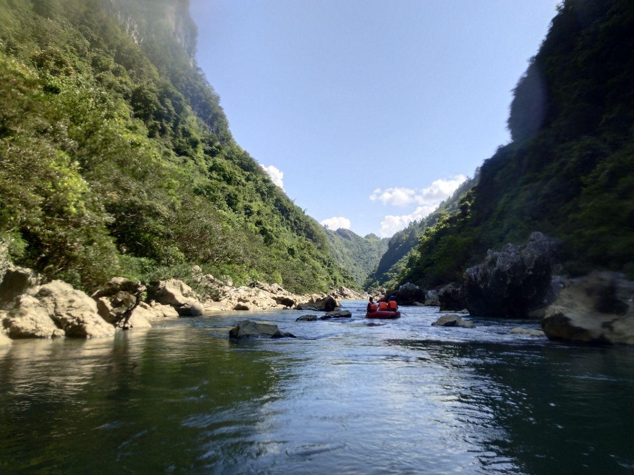 到荔波不玩漂流实乃憾事,水春河实际上是一条峡谷,两岸险峰对峙,浓荫蔽日。喜爱宁静的游客可以在上游荡舟观赏美景,感受溪边照影行;喜欢刺激的游客则可以在下游冲浪、漂流,感受奔流咆哮而下的快感。