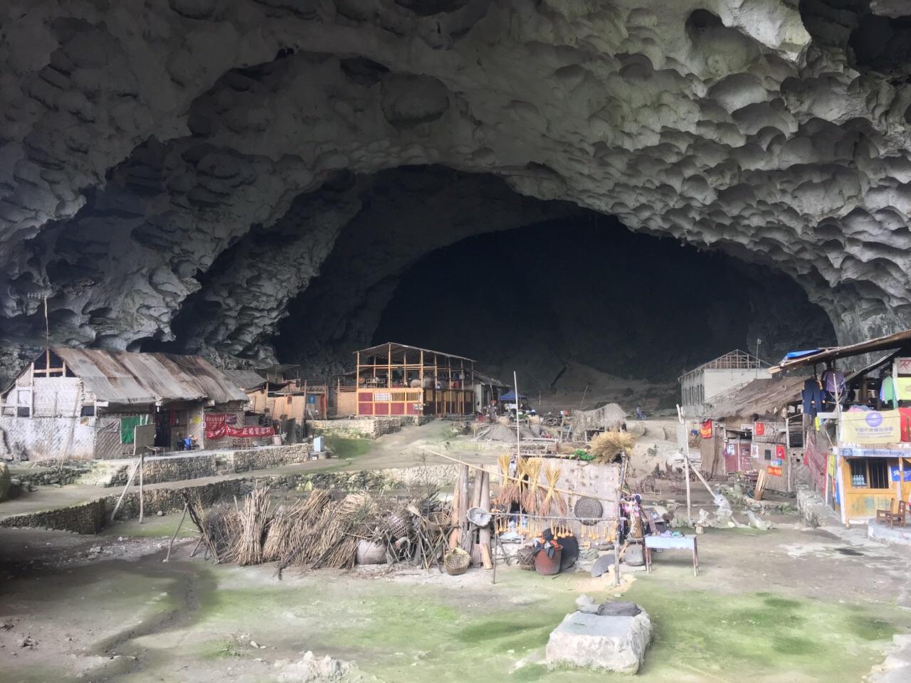进洞路线:进洞的路途十分艰险遥远。从政府为这里居民修筑的公路尽头下车,还要步行一小时崎岖山路,途中翻越一座高山,再爬到对面的山腰上,才能到达此洞口。沿途悬崖峭壁乱石挡道,多处山路的宽度不足一米。