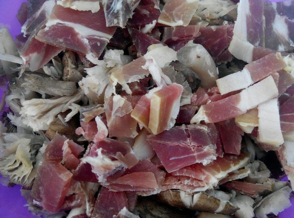 诺邓千年历史的盐井造就了诺邓火腿的独具美味。诺邓火腿制作精细,质优味美,切口肉色嫩红,口感醇香。超过两年的火腿瘦肉,是直接可以食用的,生吃也是别有一番风味。