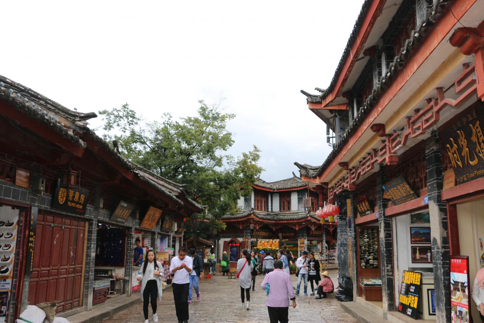 随便逛逛都可以吃到不少纳西特色的美食。旁边的新华街是丽江著名的酒吧街,每天晚上灯火通明,游人如织。每天清早,有很多人在这里跳纳西舞。 晚上,也有人围着篝火跳锅庄。