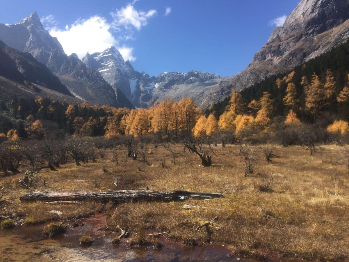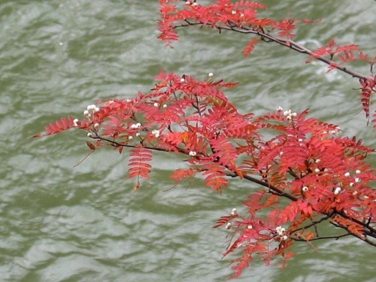 漫天遍地的红叶使这里构成了一个红色的梦幻世界成就了米亚罗这一大片燃烧的“火焰”,与蓝天、白云、山川、河流构成一幅醉人的金秋画卷。