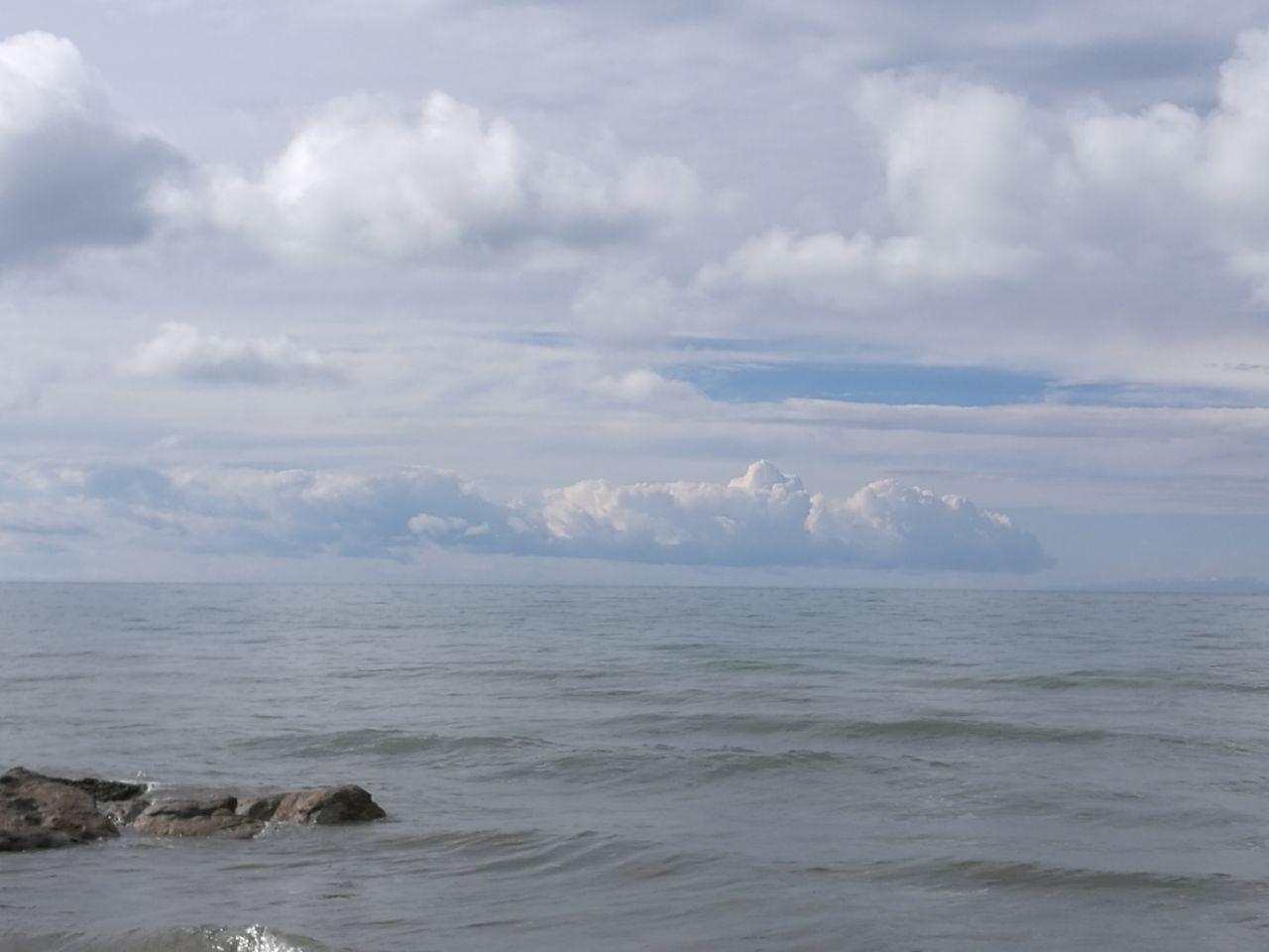 辽阔的湖面,湛蓝的天空映射湖面显出蔚蓝色的光芒,带着湖水湿气的空气,遇上周围的山峰,形成带状云,这是青海湖最独特的风景线。