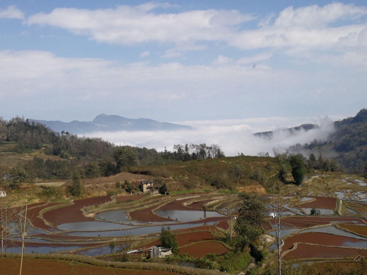 上帝洒落在人间的调色盘,每到冬季,这里的农作物会呈现出不同的颜色。每当阳光照射在红土地上,一部分翻耕待种的红土地绚烂得就像燃起了熊熊大火,而另一部分红土地已经种上绿绿的青稞或小麦,远远看去,就像上帝不小心打落的调色板,色彩绚丽斑斓,衬以蓝天、白云和那变幻莫测的光束,构成了红土地壮观的景色。