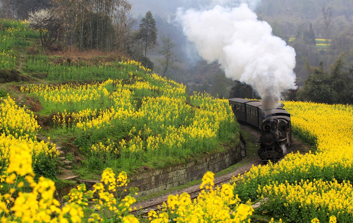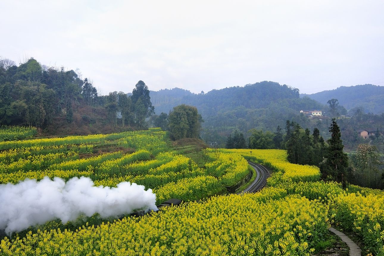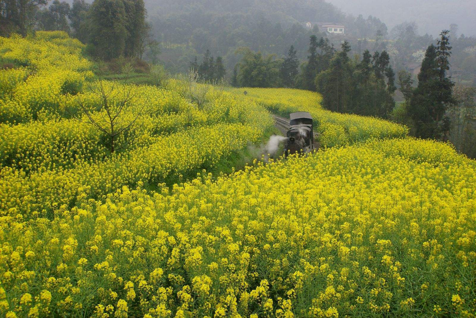 每逢春天,这里便化作诗中才有的胜景。生活也需要些这样美得不真实的记忆,清脆的汽笛声响彻山野,坐好,开向梦境深处的火车缓缓启动。