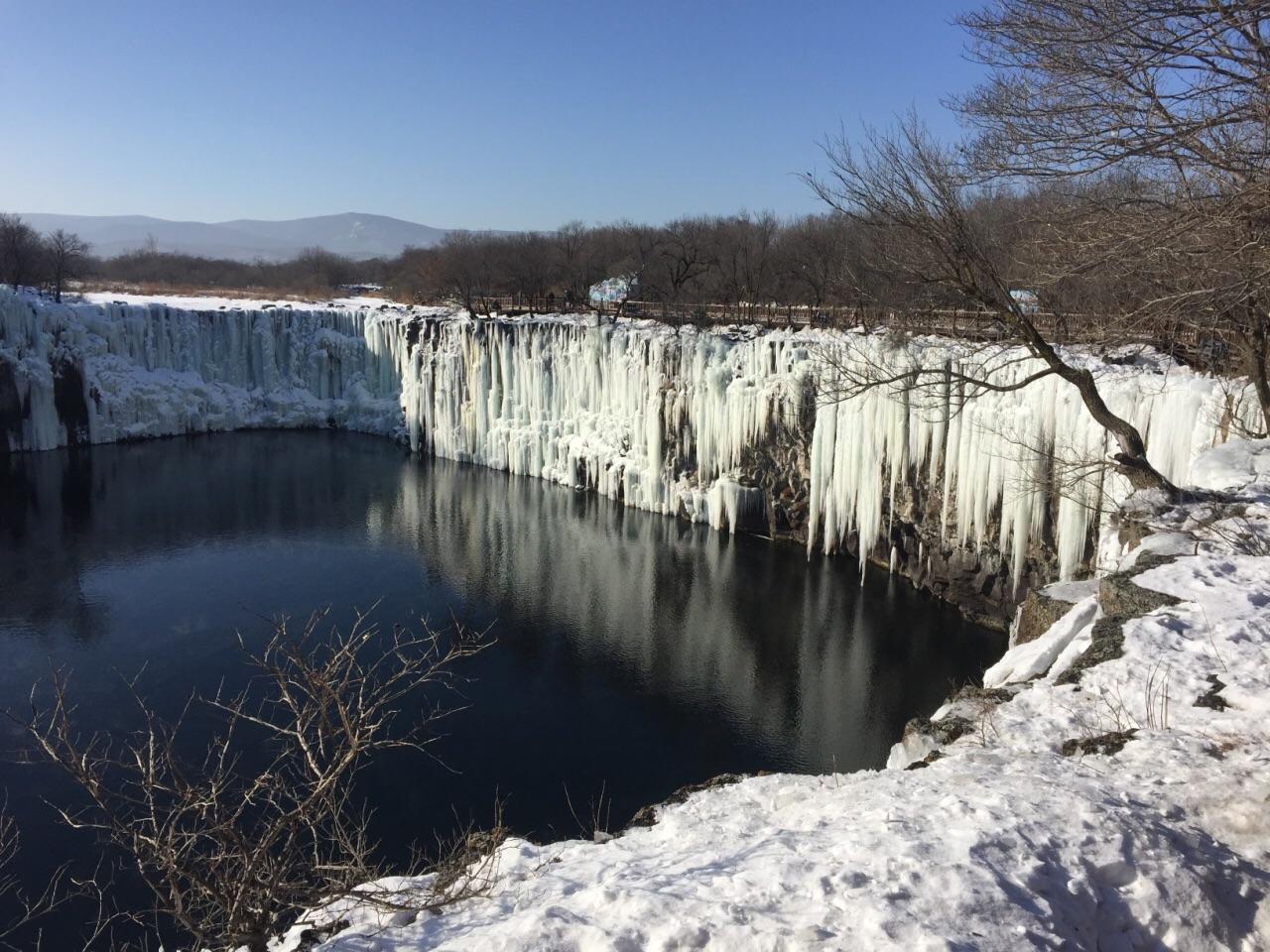 来到镜泊湖,最值得看这里的冰瀑奇观——吊水楼瀑布,百米宽冰瀑落宛如仙境,十分震撼!