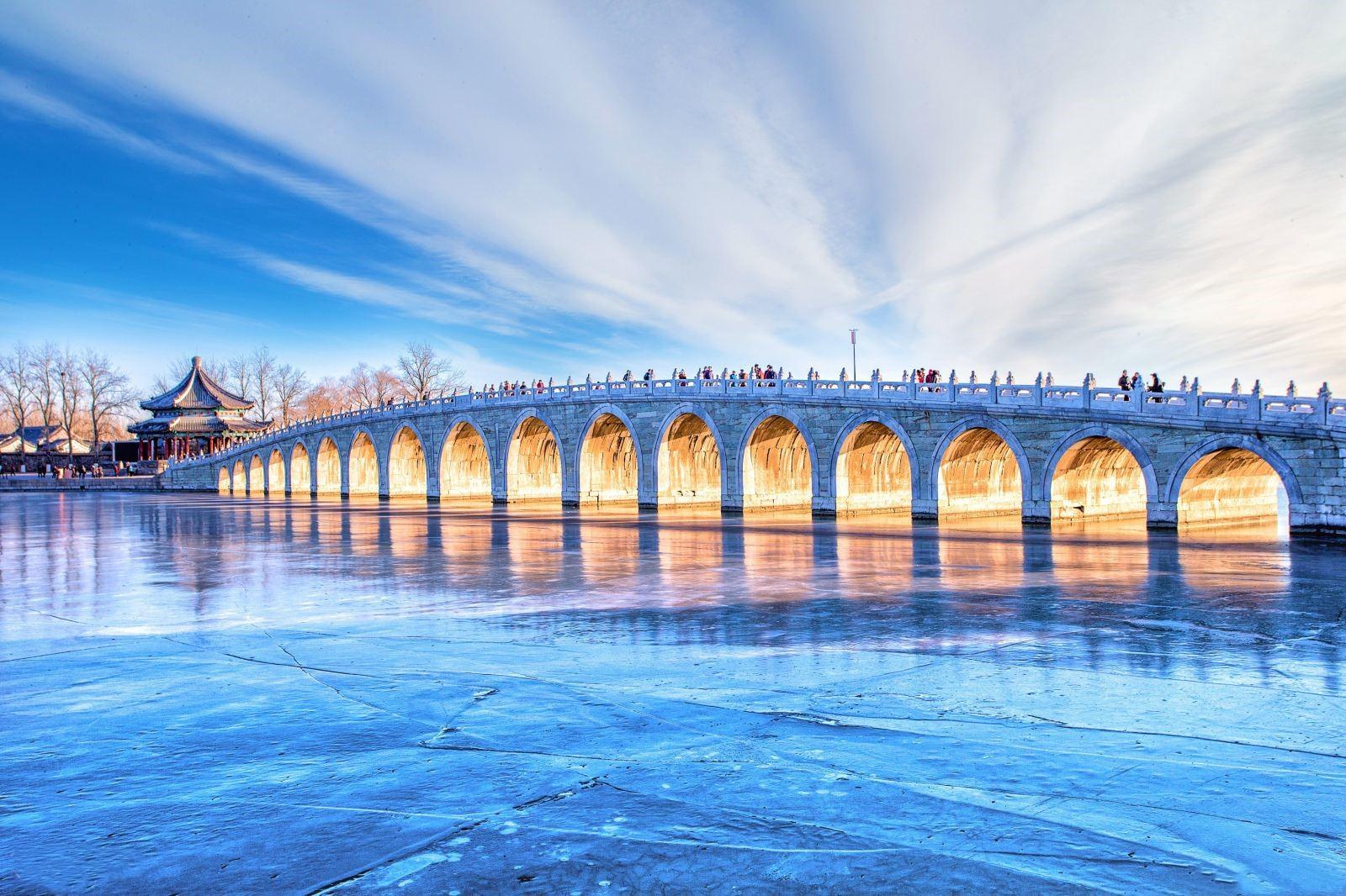 颐和园,原名清漪园,始建于清乾隆帝十五年(公元1750年),历时15年竣工,是清代北京著名的“三山五园”中最后建成的一座园林。颐和园集传统造园 艺术之大成,借景周围的山水环境,饱含中国皇家园林的恢弘富丽气势,同时又充满了自然之趣,高度体现了"虽由人作,宛自天开"的造园准则。