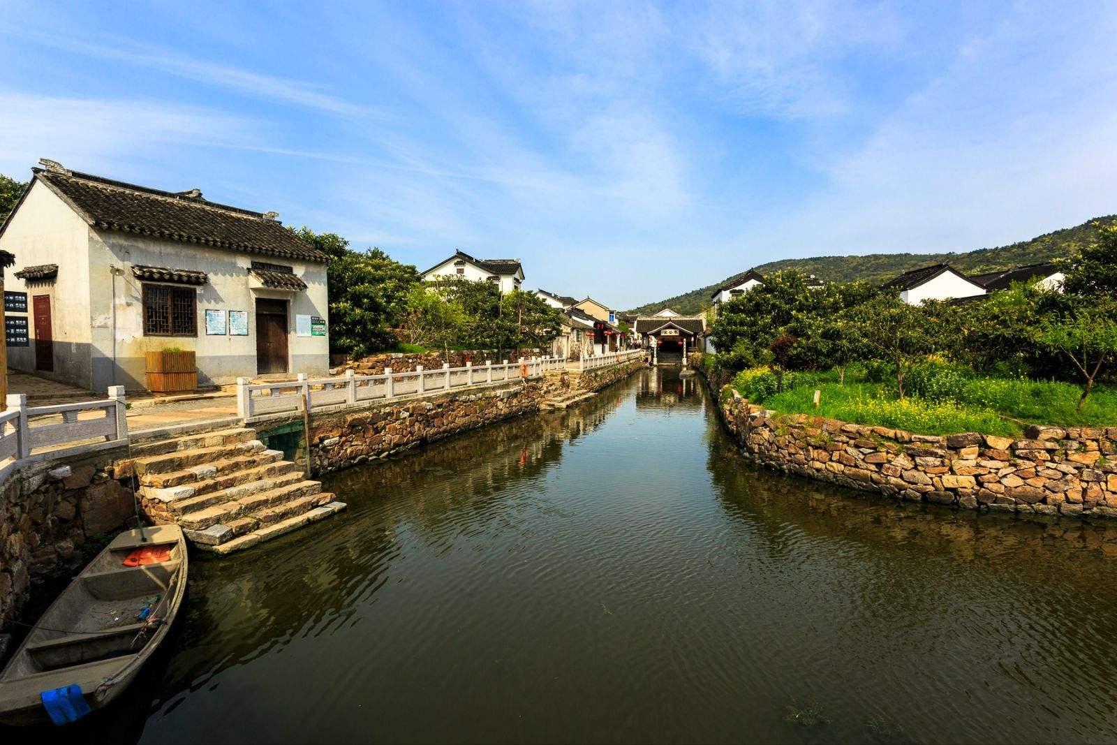 苏州后山太湖边的陆巷古村是明代正德年间宰相王鏊的故里,被誉为“太湖第一古村”。 陆巷古村源于南宋,距今逾千年,明代老街、三元牌楼鳞次栉比。村北寒谷山,低而秀丽,夕阳西下红日缓沉,闪耀壮观。